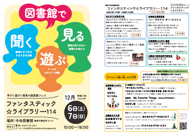 今年度は中央図書館を会場に、聞く・見る・遊ぶファンタスティック☆ライブラリー・114を開催します。